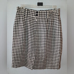 A Mondi Vintage Wool Lined Mini Houndstooth Skirt Black White