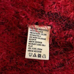 A Moon Cardigan Womens Size Large Red Black Fuzzy Open Front Pockets Sweater