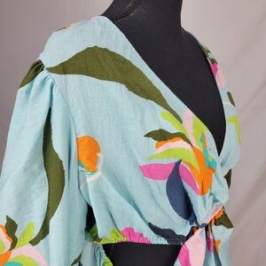 A NEW DAY Bright Tropical Floral LongSleeve v Neck Cutout top Size 2XL