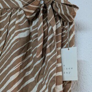 Brown and white zebra patterned skirt with a linen wrap bow tie adding sophistication to your style. Perfect for everyday wear. Brand new and sealed.