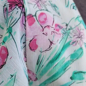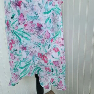 A NEW DAY Dress WOMENS FLORAL PRINT WRAP RUFFLE SLEEVES PINK Green Sz M