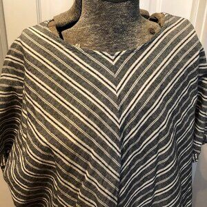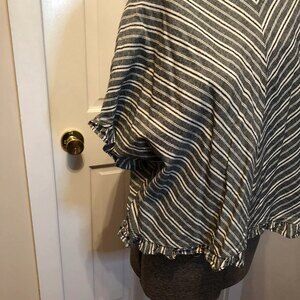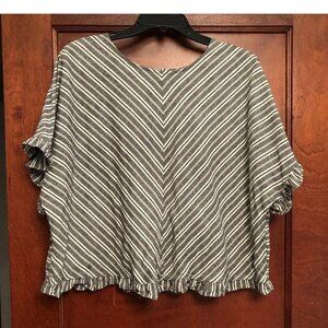 A NEW DAY GRAY AND WHITE COTTON RUFFLE STRIPED TOP BOHO SIZE LARGE