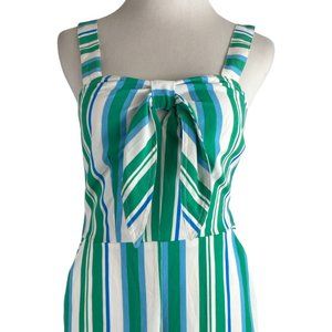 A NEW DAY Jumpsuit Size XS Green Blue Striped Bow Front Pockets Wide Legs Straps