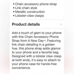 A NEW DAY NWT Gold Chain Accessory Wristlet Phone Strap