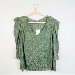 A NEW DAY WOMEN'S LEOPARD PRINT ELBOW SLEEVE V-NECK REGULAR FIT BLOUSE