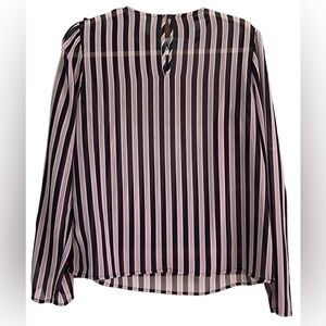 Super soft, comfy, lightweight, sheer long sleeve top. A new day brand size small. Pink/black/white stripes, button and loop closure at top of back. A perfect top for career or casual. This has been worn 1-2 times, washed carefully and line dried.