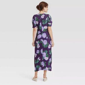 A NEW DAY Purple Floral Hi-Low Crepe Dress w/Ruched Sleeves
