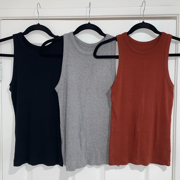 These are size MEDIUM — black, gray and brick red-colored tank top set by A New Day from Target