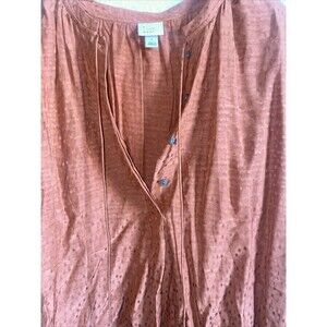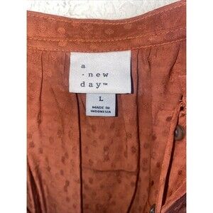 A NEW DAY WOMENS Prairie Peasant Ballon Long Sleeve Blouse Tie Button Front L