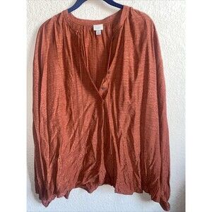 Beautiful lightweight a new day burnt orange balloon, long sleeve blouse tunic shirt top