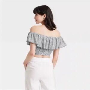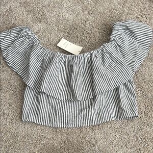 A NEW DAY STRIPED LINEN TOP off the shoulder size M
