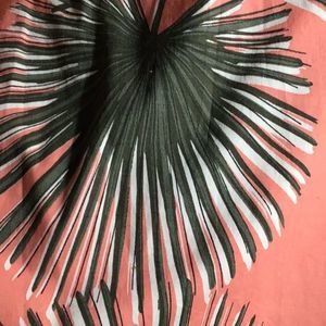 Apricot with green/white floral fans