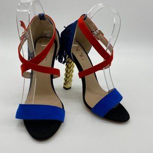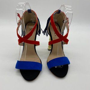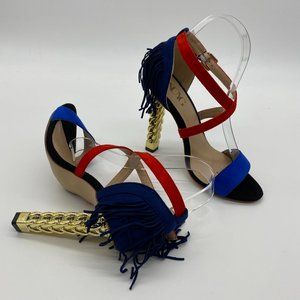 A NUYG Cross Over Strap Chunky Heel Tassels Sandals