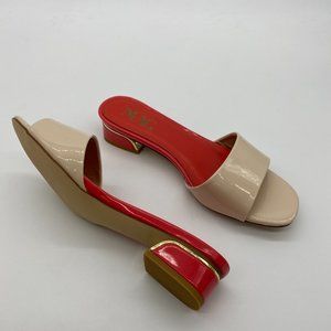A NUYG Nude Chunky Low Heel Open Toe Mules
