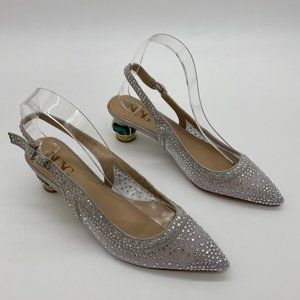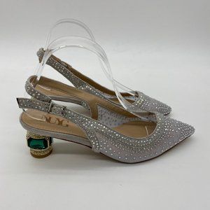 A NUYG Pointed Toe Slingback Crystal Heel Pump