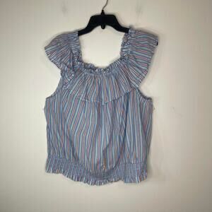 ANA A New Approach bouse shirt top women’s plus size XXL 2XL sleeveless with stretchy elastic at shoulders can be worn on or off the shoulder. White blue mint green red stripe. More elastic found at the waist.