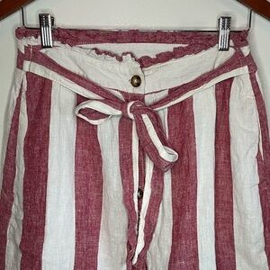 A New Approach Paperbag skirt Button Front Boho linen striped red white