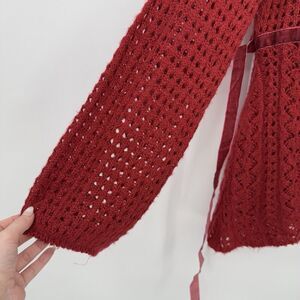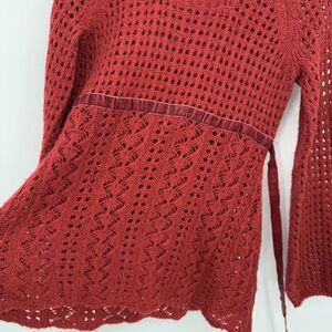 A New Approach Red Knit Long Sleeve Sheer Sweater Velour Ribbon Bow Size Small