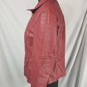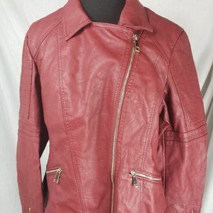 a n a A New Approach Women LARGE Red Faux Leather Jacket Zipper Moto Biker Chic