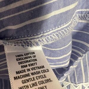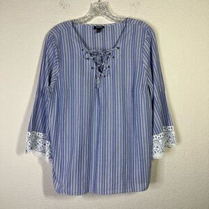A New Approach Women's Blue White Striped Tie Neck 3/4 Sleeve Blouse Size Large