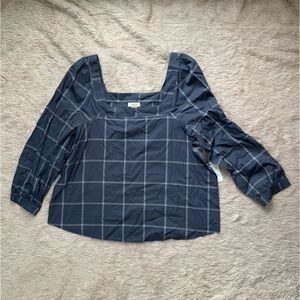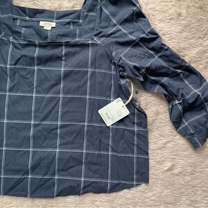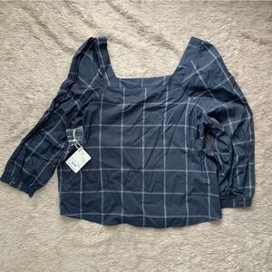 A New Approach Womens Square Neck Woven Blouse window pane plaid size large NWT