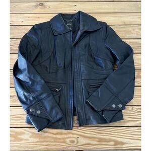 A New Approach Zip Pocket Lamb Skin Jacket Size Medium Women’s Black Full Zip