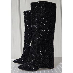 A New Day Abba Black Sequin Covered Foldover Knee High Evening Boots