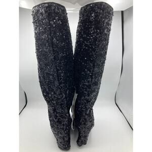 A New Day Abba Black Sequin Covered Foldover Knee High Evening Boots -- Size 6.5