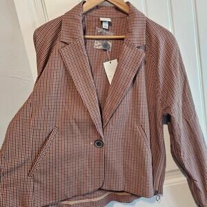A New Day Adaptive Seated Fit Side Opening Blazer Women Size Large Brown Plaid