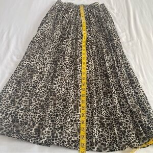 A full pleated animal print with elastic waist. Will fit a larger size as waist stretches and skirt is full.