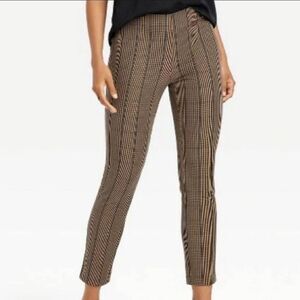 A New Day Womens Side Zip Skinny Ankle Flat Front Dress Pants Size 16 Cattail Plaid Brown Work