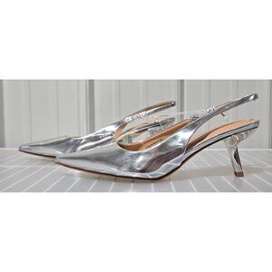 A New Day Aubrey Metallic Silver Slingback 2" Heels w/ Pointed Toe -- Size 11