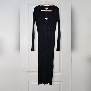 A New Day BLACK V-Neck Midi Sweater Dress XS Slit Sleeves Left Side Slit