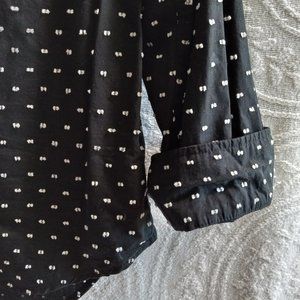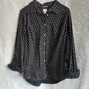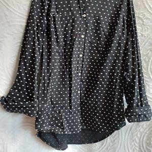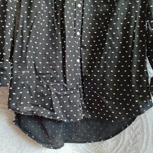 A New Day Black Button Down Shirt Top With Swiss Dots.