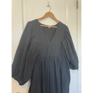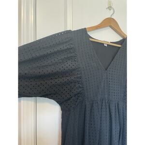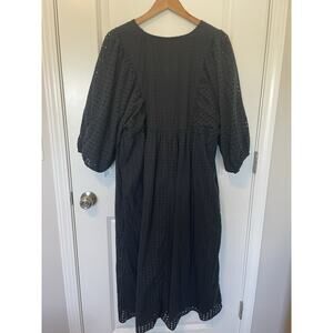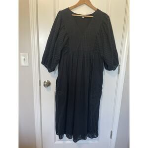 A New Day Black Eyelet Midi Maxi Dress Puff Sleeve Plus Size XXL Pockets Boho 2X