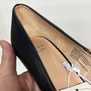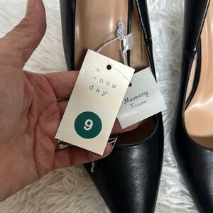 Elevate your style with these sleek black heels from A New Day, featuring a timeless pointed-toe design and a medium-height stiletto heel. Crafted with a minimalist aesthetic, these shoes are perfect for professional or formal occasions, offering a sophisticated and polished look. See all photos as they are part of description (Has some scratches)