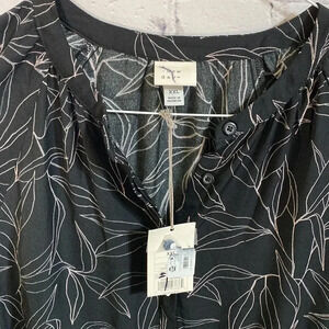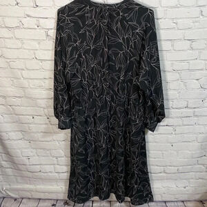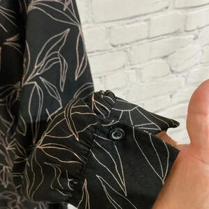 A New Day Black Leaves Shirteaist Button Up Long Sleeved Dress