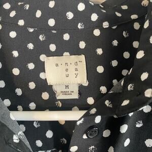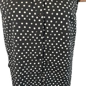 A New Day Black Polka Dot Button Front Collared Blouse Women Sz M