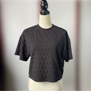 Black, quilted, boxy short sleeve top with crew neck. Relaxed fit, perfect for everyday wear. Great condition!