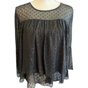 A New Day Black Sheer Illusion Babydoll Top Polka Dot SMALL Romantic Boho