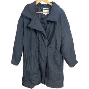 A New Day Black Trench Coat Black Lightweight Puffer Button Jacket Large