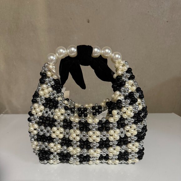 White silver & black beaded bag - perfect for a holiday party! Never used, tags still on!