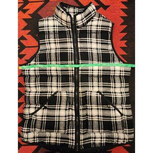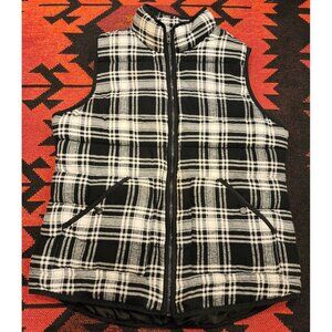 A New Day Black & White Plaid Puffer Vest With Front Pockets & Zipper Closure XL
