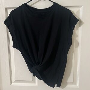 Stylish black top with a twist detail. Short sleeves. Perfect for casual wear.