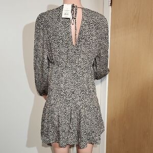 This elegant sundress by A New Day showcases a sophisticated black and cream color scheme with a charming ruffled, tiered design. The long bishop sleeves and v-neckline offer a graceful silhouette, ideal for both casual and cocktail settings. Its flowing fabric ensures comfort and style for any occasion.