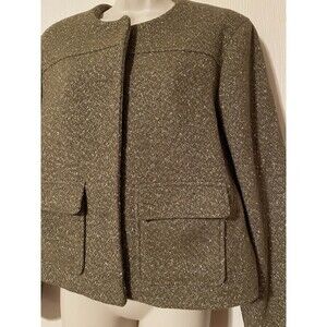 A New Day Blazer Jacket Womens 12 Green Gold Metallic Wool Blend Pockets Lined