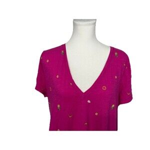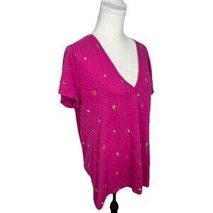 A New Day Blouse Plus XXL Floral Boho Tropical V Neck Short Sleeves 100% Cotton