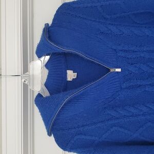 Stay cozy and stylish with this vibrant blue cable knit sweater. Perfect for any casual outing. EUC