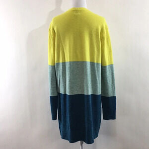 A New Day Blue Yellow Stripe Knit Tunic Cardigan Sweater Womens Small Open Front