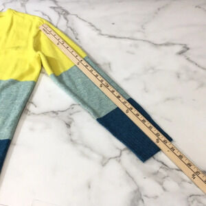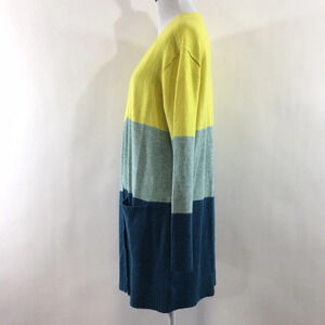 A New Day Blue Yellow Stripe Knit Tunic Cardigan Sweater Womens Small Open Front